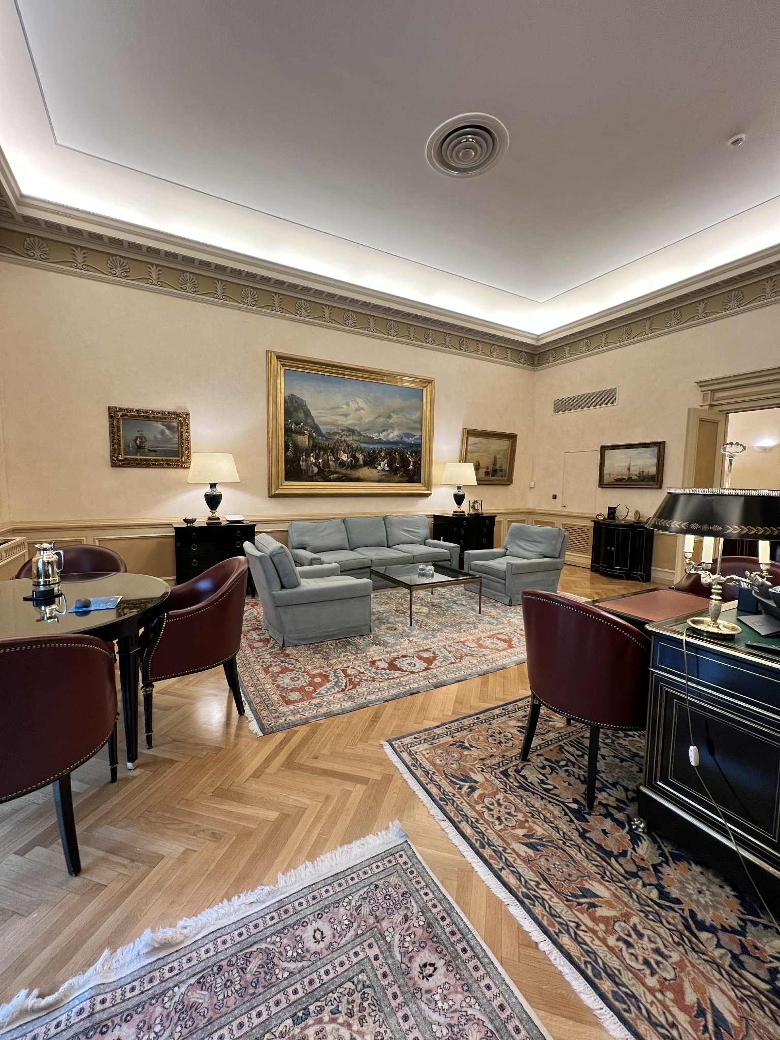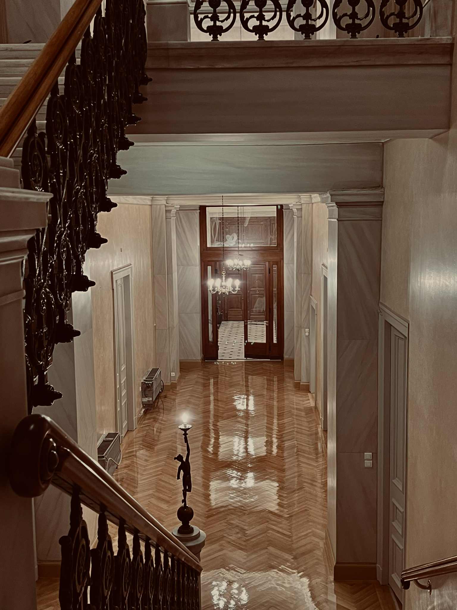 Το αποτέλεσμα συνδυάζει την πιστότητα στην ιστορική τεκμηρίωση με σύγχρονες απαιτήσεις λειτουργίας και αισθητικής, επαναφέροντας το μέγαρο στην αυθεντική του μεγαλοπρέπεια. Τις εικόνες του έργου συνοδεύουν φωτογραφίες υψηλής ανάλυσης που αποτυπώνουν την ποιότητα της παρέμβασής μας και τη λεπτομέρεια των αποκαταστάσεων.